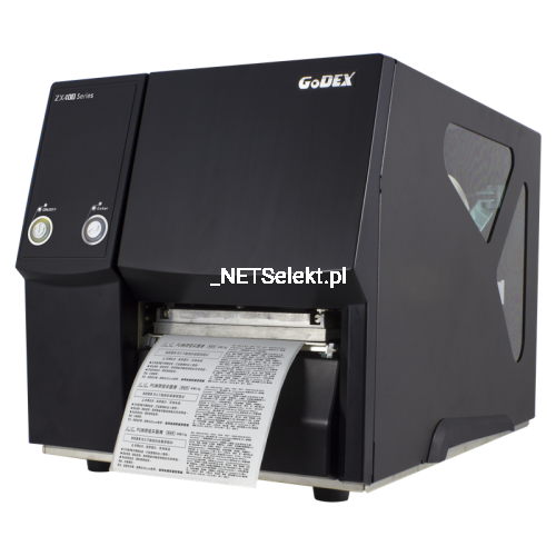 Godex ZX430 oferuje termiczny, jak i termotransferowy rodzaj druku w rozdzielczości 203 DPI, przy maksymalnej prędkości drukowania 102 mm/s i etykietach o maksymalnej szerokości 105.7 mm.