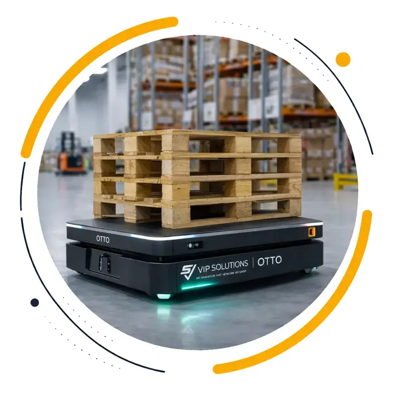 AMRobotics OTTO 1200 to zaawansowany robot mobilny klasy przemysłowej, zaprojektowany do automatyzacji transportu palet i ciężkich ładunków w środowiskach produkcyjnych oraz magazynowych.