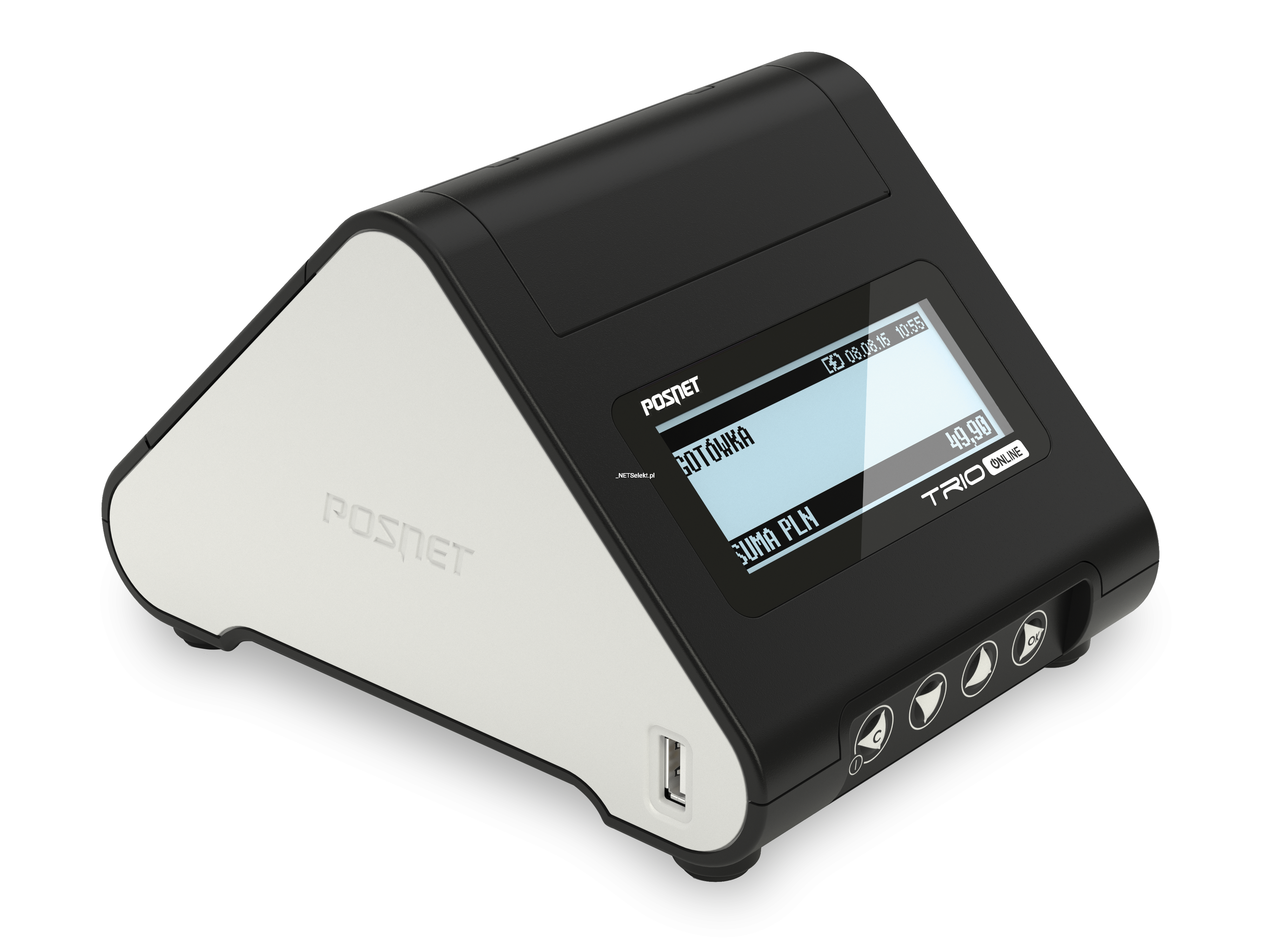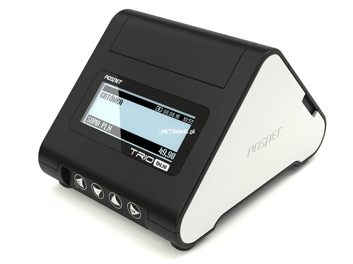 Posnet Trio Online drukuje na papierze termicznym o szerokości 57 mm oraz z prędkością do 30 linii na sekundę. Graficzny oraz kolorowy wyświetlacz jest jasny i czytelny, dzięki czemu obsługa urządzenia jest prosta i intuicyjna.