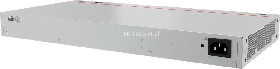 Urządzenie oferuje 24 porty Gigabit Ethernet z obsługą PoE+ oraz 4 sloty SFP+ o przepustowości 10 Gb/s, co pozwala na szybką transmisję danych i podłączenie segmentów sieci na znaczne odległości.
