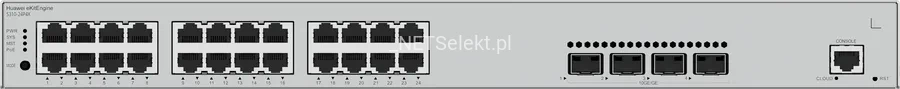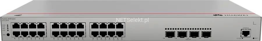 Huawei eKitEngine S310-24P4X to profesjonalny, zarządzalny przełącznik warstwy L2+, który oferuje 24 gigabitowe porty Ethernet (10/100/1000 Mb/s) oraz 4 sloty SFP+ (10 Gb/s).