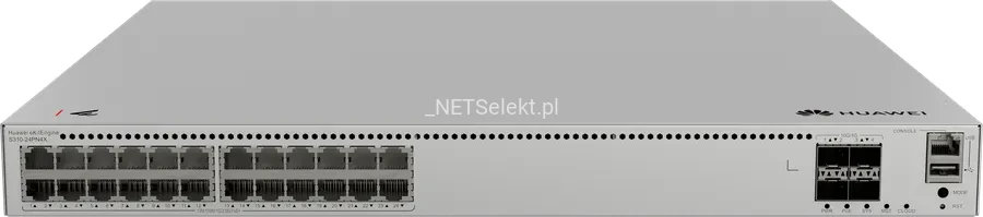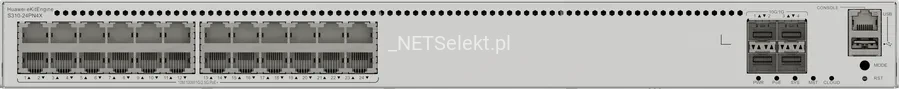 Huawei eKitEngine S310-24PN4X to zaawansowany przełącznik zarządzalny warstwy L2+, który oferuje 24 porty 10/100/1000BASE-T z obsługą PoE+ (Power over Ethernet) oraz 4 uplinkowe sloty SFP+ 10G.