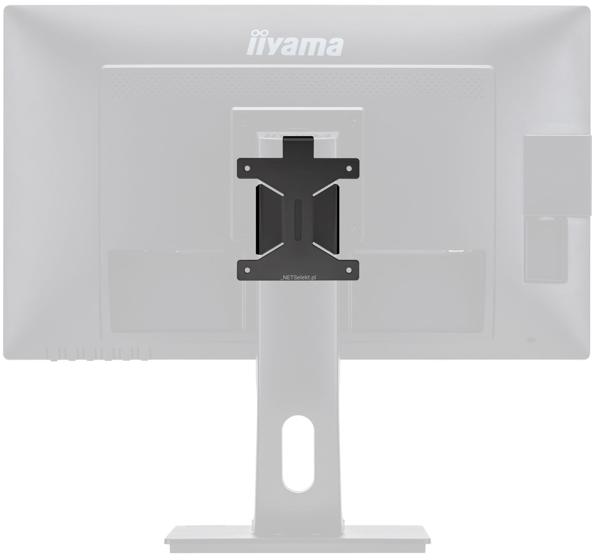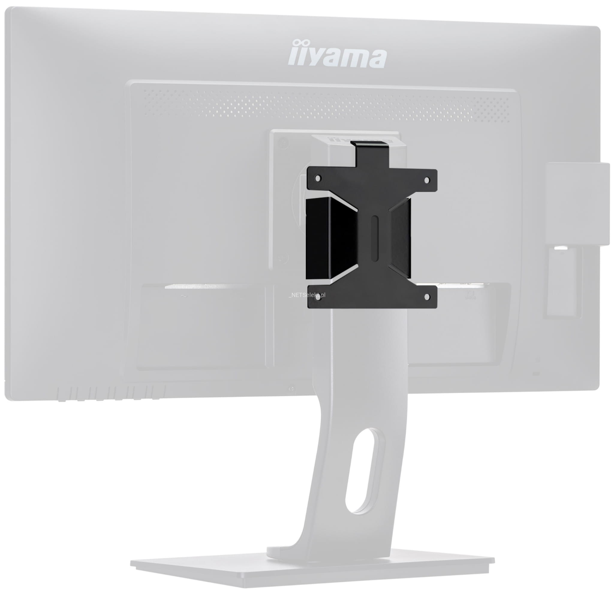 Uchwyt do ekranu monitora Iiyama pozwalający zamontować mini PC lub urządzenie typu thin-client.