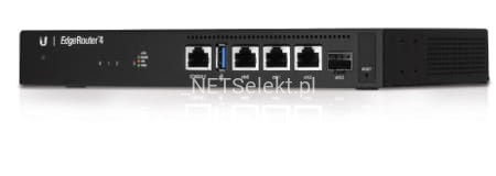 4-portowy router Gigabit z 1 portem SFP EdgeRouter 4 zapewnia wydajność 3,4 miliona pakietów na sekundę w kompaktowej i ekonomicznej jednostce.