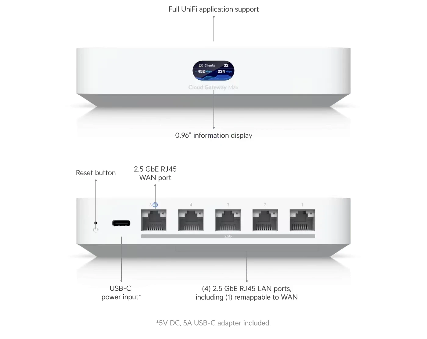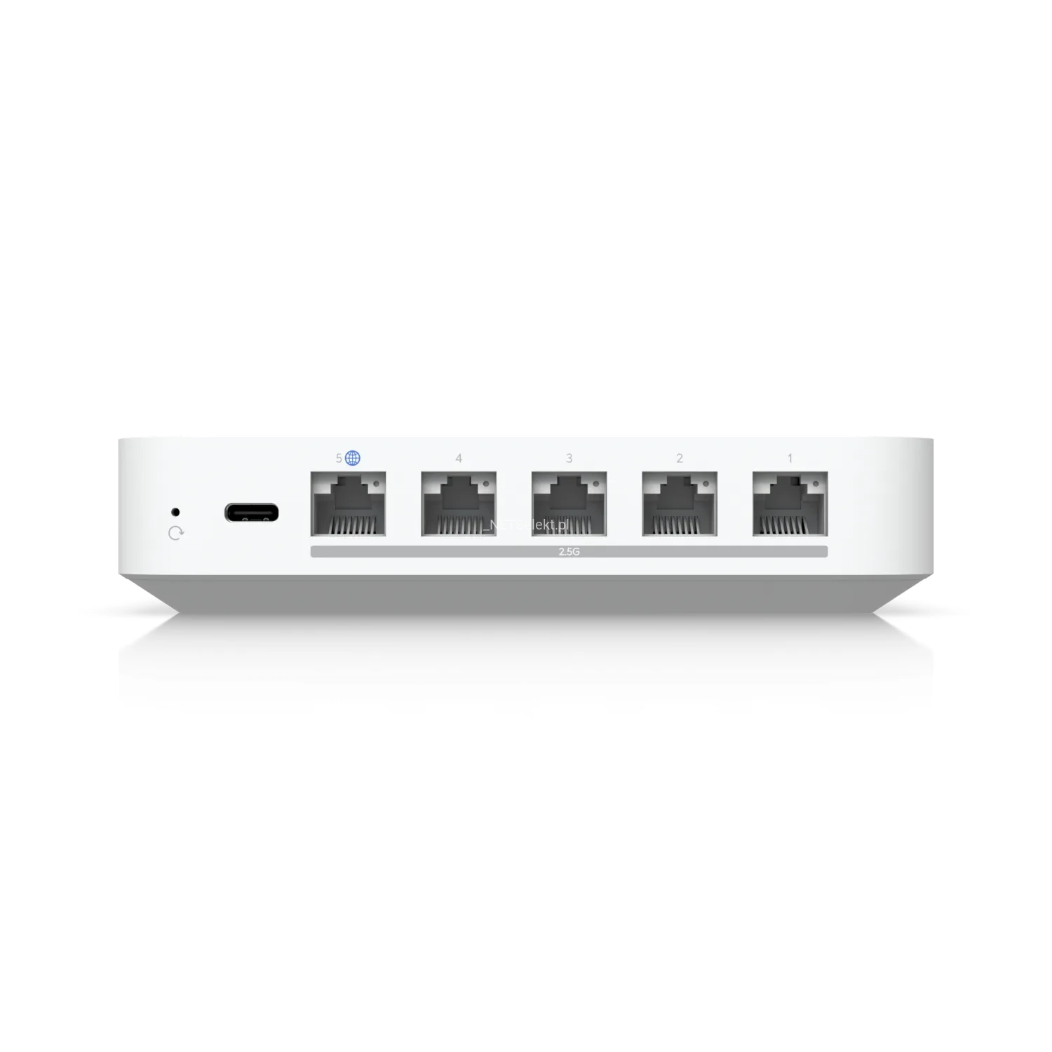 UCG-Max oferuje 1 port WAN 2.5 Gb/s oraz 4 interfejsy LAN 2.5 Gb/s