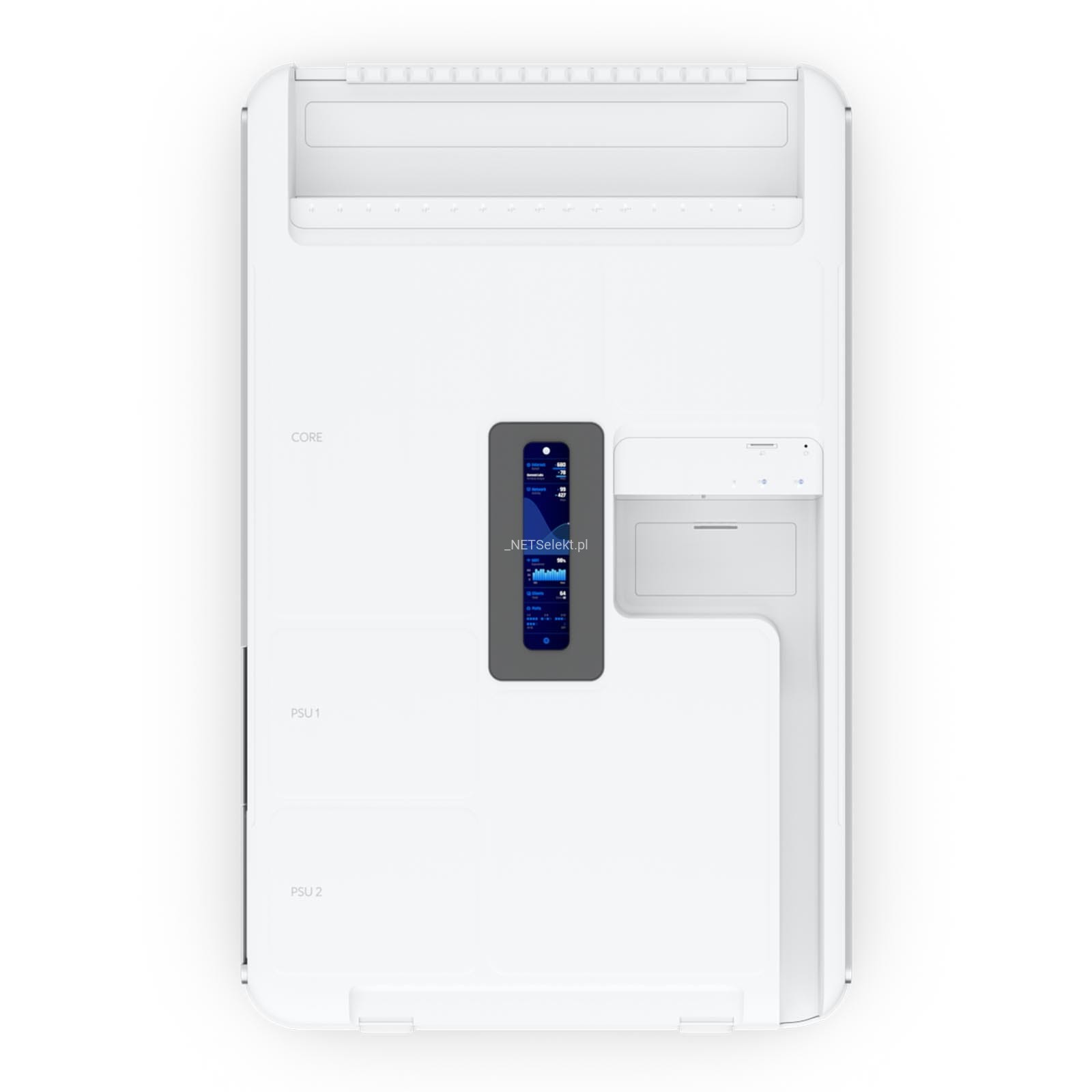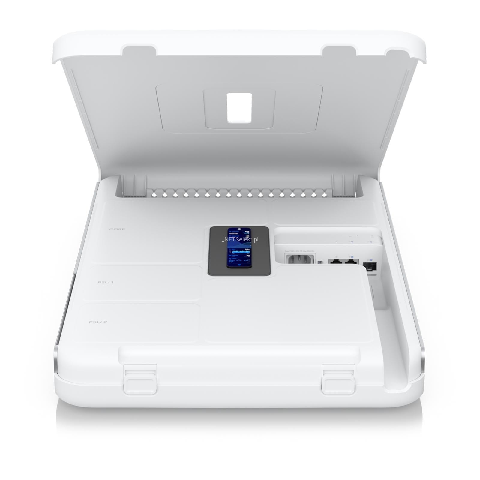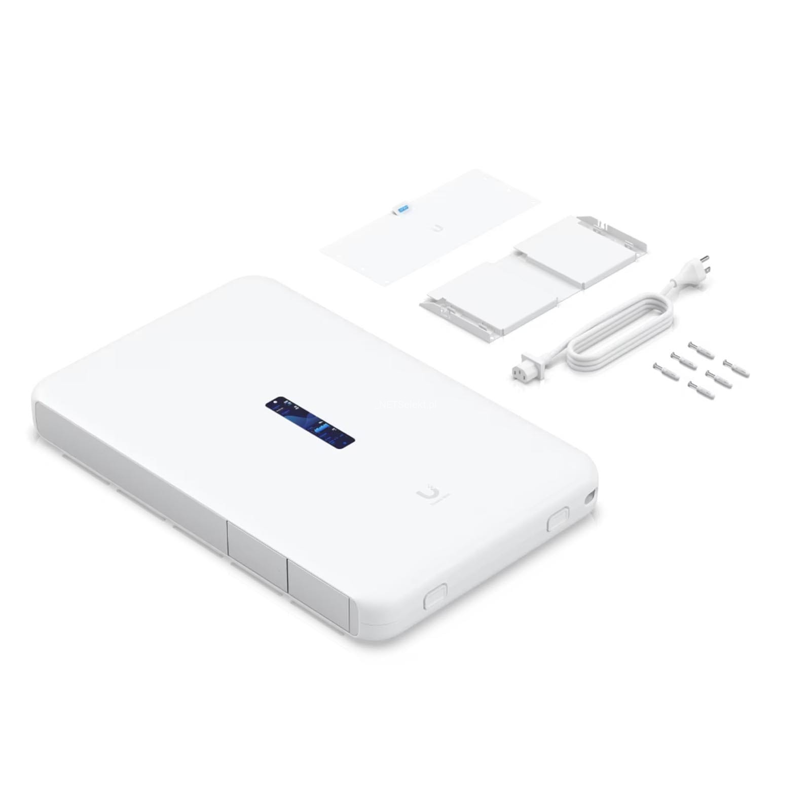Na wyposażeniu znajdziemy także kolorowy ekran o przekątnej 4,7", który służy do monitorowania stanu pracy urządzenia. Standard komunikacji Bluetooth usprawni proces konfiguracji urządzenia, który dostępny jest z poziomu przeglądarki internetowej lub aplikacji mobilnej UniFi Network.